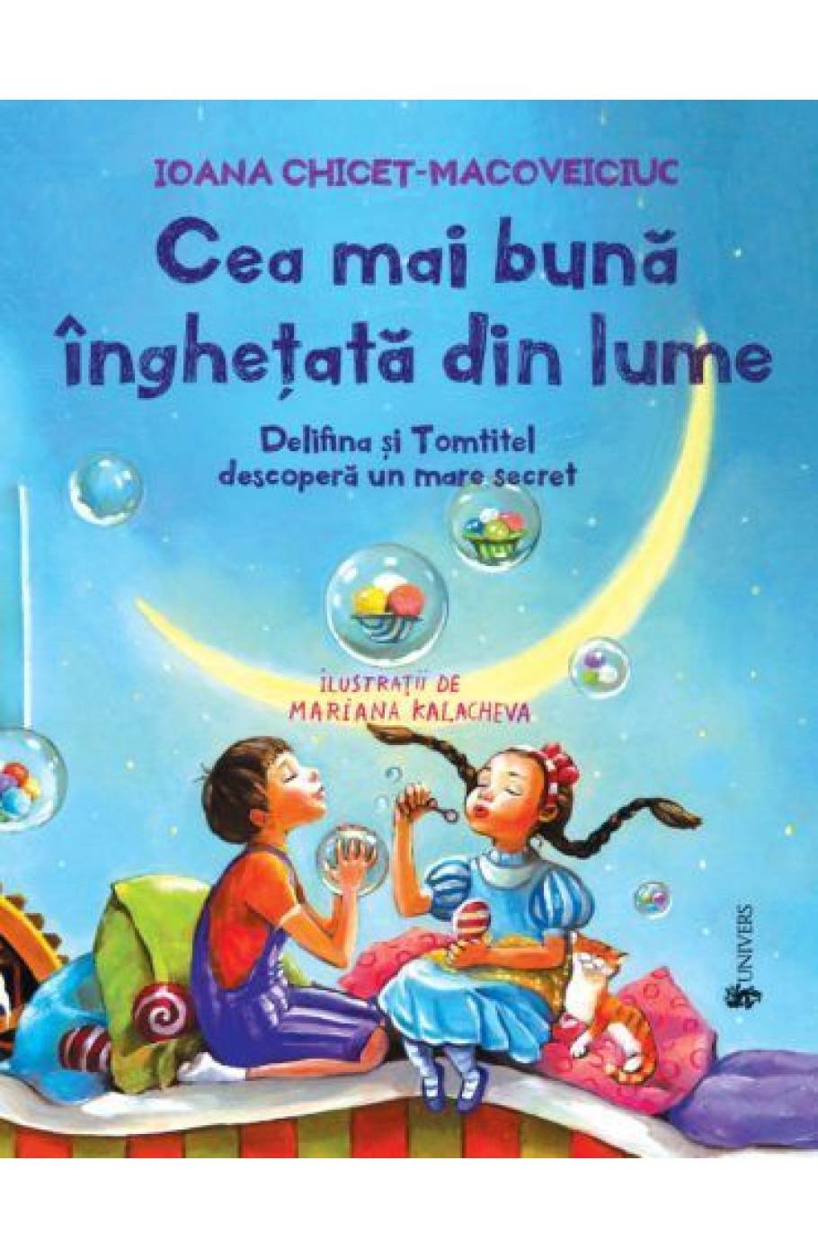 Delifina si Tomtitel, buni prieteni, sunt innebuniti dupa inghetata. Cand cresc, deschid o fabrica de inghetata si-si construiesc o casa in care totul seamana cu inghetata. Dar intr-o zi afla de la un baietel ceva neasteptat. Oare dragostea de inghetata ar putea insemna si altceva decat au crezut ei toata viata? si care e, de fapt, cea mai buna inghetata din lume? Nu cea de vanilie? Nici cea de ciocolata? O poveste plina de culoare si surprize, scrisa cu drag de inghetata de autoarea Ioana Chicet-Macoveiciuc si ilustrata cu delicatete si magie de Mariana Kalacheva, artista internationala cu lucrari expuse in Italia, Franta, Spania, Belgia, S.U.A. (si, printr-o coincidenta, casatorita cu un domn care detine un atelier de inghetata artizanala).