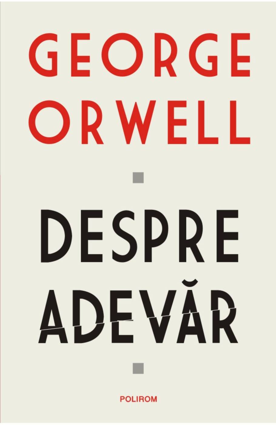 Traducere din limba engleza de Ioana Aneci Prefata de Teodor Baconschi Volumul Despre adevar reuneste texte diverse ale lui George Orwell pe aceasta tema, de la scurte eseuri la articole, de la piese memorialistice la fragmente relevante din romanele autorului. Orwell abordeaza subiecte ce merg de la onestitatea si moralitatea individuala pina la libertatea de exprimare si propaganda politica. Gindirea clara si scepticismul revelator care ii sint caracteristice reprezinta o aparare perfecta impotriva lumii post-adevar in care traim, o lume stapinita de fake news si confuzie. Nu a fost doar un mare scriitor. Avem nevoie de el astazi datorita pasiunii sale pentru adevar. ( The Sunday Times ) Orwell si-a facut o datorie din a spune adevarul intr-o vreme in care multi erau convinsi ca istoria consacrase minciuna. ( Time )