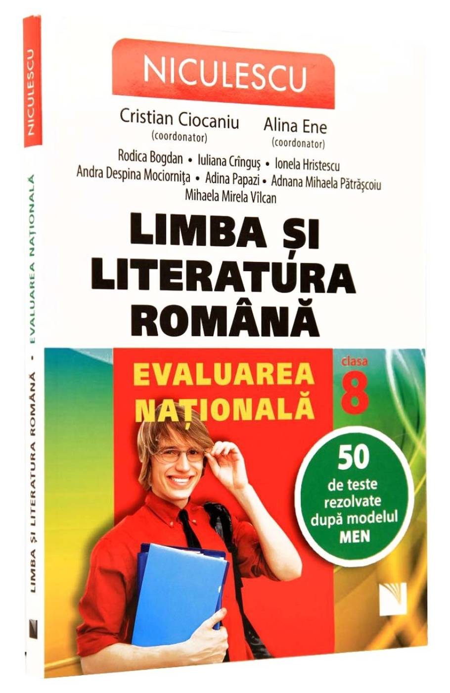 Lucrarea de fata completeaza seria auxiliarelor scolare de limba si literatura romana pentru clasele V- VIII aparuta la Editura NICULESCU, mizand pe aceeasi formula a parteneriatului elev-profesor, conditie a unui demers didactic complet si eficient. Aceasta carte cuprinde 50 de teste, care au fost elaborate in conformitate cu programele scolare pentru clasele V-VIII si cu programa pentru Evaluarea Nationala. Testele sunt insotite de rezolvari complete, continutul si structurarea itemilor respectand formula subiectelor de examen. Textele-suport variate, apartinand unor genuri si specii literare diverse, precum si rezolvarile complete fixeaza competentele-cheie in vederea sustinerii Evaluarii Nationale.