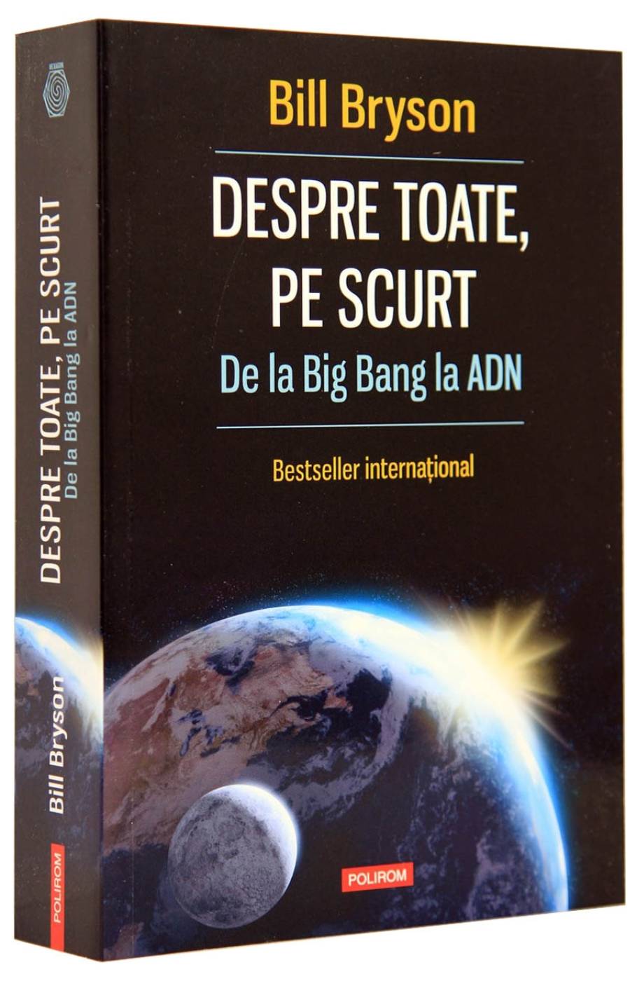 Volumul Despre toate, pe scurt a fost distins cu Aventis Prize si Descartes Science Communication Prize. O istorie ingenioasa si antrenanta a universului, Pamintului, vietii si omului, o poveste care merge de la Big Bang, cind nu eram nimic, pina la aparitia civilizatiei si la noi, cei de astazi. Bill Bryson pleaca de la propria experienta de elev care, intrigat de o imagine a Pamintului in sectiune, citeste manualul de stiinte ca sa gaseasca aici un amestec de lucruri de neinteles - mai putin raspunsurile la ceea ce ii stirnise curiozitatea, inclusiv cum si de unde stim toate aceste lucruri. Despre toate, pe scurt e rodul acestor cautari, o aventura fascinanta pe tarimul cunoasterii umane, relatata asa cum numai Bryson stie sa o faca si care ne dezvaluie lumea intr-un mod in care cei mai multi dintre noi nu au vazut-o niciodata inainte. Cu adevarat impresionant. E greu de imaginat o introducere mai buna in stiinta. (John Waller, The Guardian )