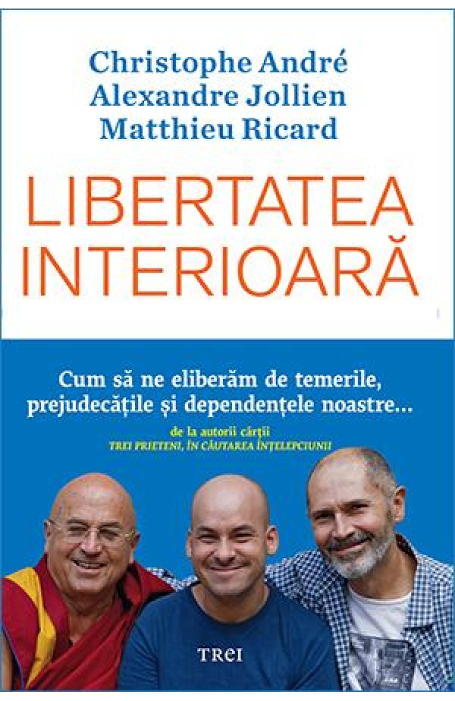 Sa fim liberi: marea provocare a existentei noastre Cum putem dobandi libertatea interioara, cea care ne ingaduie sa abordam, cu seninatate, culmile si abisurile existentei si ne permite sa ne desprindem de cauzele suferintei? Inca din copilarie, viata ne este coplesita de temeri, prejudecati si de alte mii si mii de conditionari care stau in calea fericirii noastre. Daca vrem sa ne castigam libertatea, va fi nevoie sa smulgem rand pe rand toate aceste gratii, pe care noi insine le-am forjat sau care ne-au fost impuse de societatea de azi, dominata de performanta, consum si competitie. Aceasta carte, scrisa pe trei voci de un psihiatru, un filosof si un calugar budist, ne invita sa parcurgem, cu bucurie senina, un itinerariu menit sa ne scoata din inchisorile noastre mentale si ne apropie de semenii nostri. Volumul de fata este o continuare a dialogurilor din Trei prieteni, in cautarea intelepciunii (Trei, 2017). Christophe Andre este medic psihiatru si unul dintre cei mai buni specialisti francezi in psihologia emotiilor. Este un autor de succes in Franta, dar si in Romania, cu titluri precum Imperfecti, liberi si fericiti , Viata interioara si 3 minute de meditatie (aparute la Editura Trei). Alexandre Jollien , filosof si eseist, a trait 17 ani intr-o institutie specializata pentru persoanele cu dizabilitati. A fost premiat de Academia Franceza pentru cartea Eloge de la faiblesse si a contribuit la volumul colectiv Meditati cu noi, coordonat de Chr. Andre. Matthieu Ricard , fost cercetator in biologie, a luat calea monahismului budist, devenind interpretul pentru spatiul francofon al lui Dalai Lama. Dintre cartile sale amintim: Drumuri spirituale, Arta meditatiei si Calugarul si filosoful, bazata pe un dialog purtat cu tatal sau, Jean-Francois Revel. Cuprins Prolog Introducere PRIMA PARTE: OBSTACOLELE DIN CALEA LIBERTATII INTERIOARE 1. Akrasia, slabiciunea vointei 2. Dependenta 3. Frica 4. Descurajarea si disperarea 5. Egocentrismul 6. Ratacirea A DOUA PARTE: ECOLOGIA LIBERTATII 7. Mediul fizic ne influenteaza starea mentala 8. O ecologie a legaturilor dintre oameni 9. Impactul mediului nostru cultural A TREIA PARTE: EFORTURILE PENTRU ELIBERARE 10. Orizontul eforturilor 11. Eforturi coplesitoare, eforturi cu bucurie 12. Antrenamentul mintii 13. Meditatia 14. De la transformarea de sine la schimbarea lumii A PATRA PARTE: ROADELE LIBERTATII 15. Impacarea interioara 16. Natura noastra profunda 17. In fata mortii 18. Etica 19. Bunavointa neconditionata Am cules roade bune? Multumiri De aceiasi autori