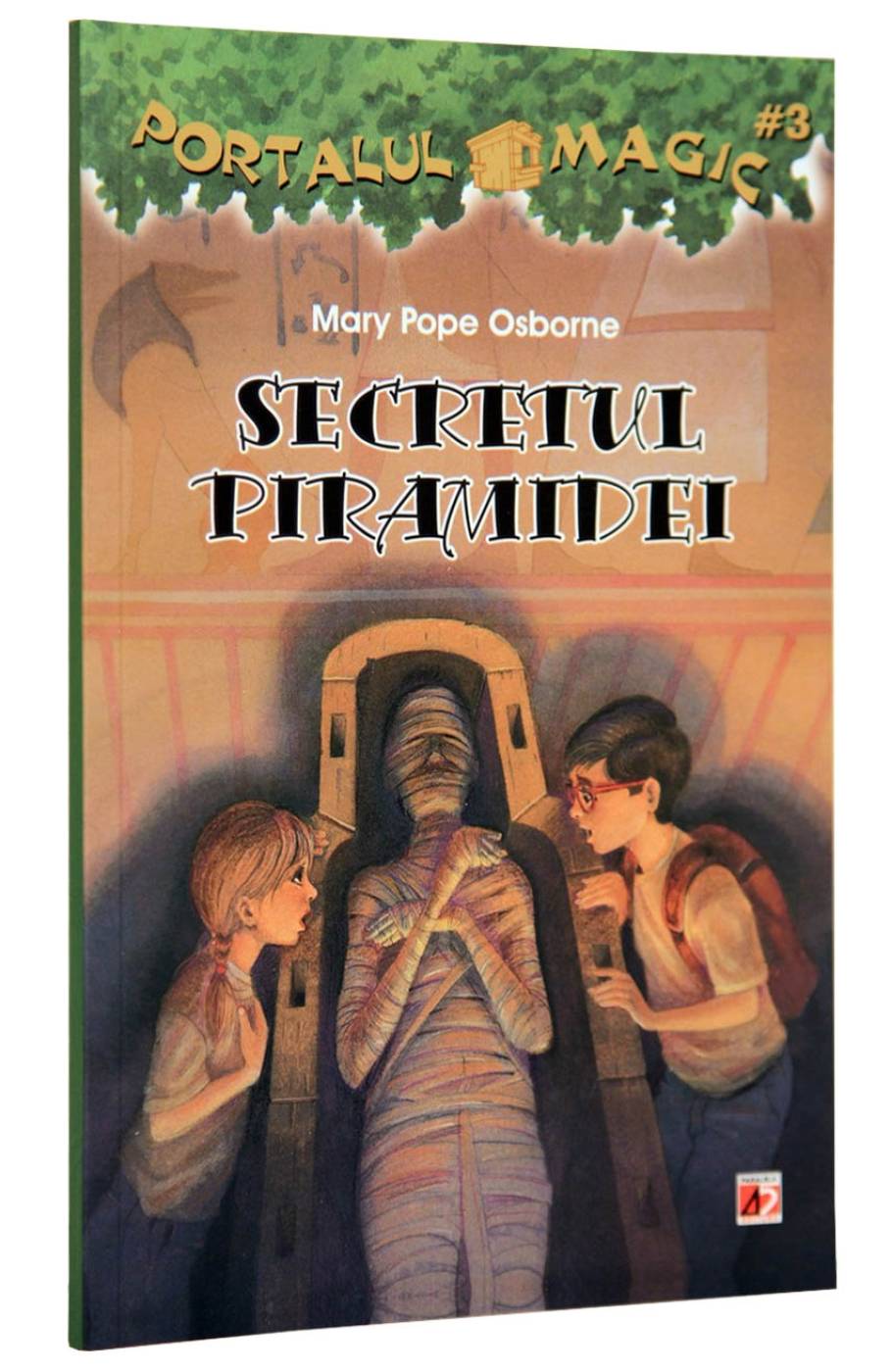 3. Secretul piramidei Egiptul Antic este noua destinatie a lui Jack si Annie! Copiii vor gasi o copie a celebrei Cartea Mortilor... si aceasta poveste este plina de suspans, dar in plus vom afla detalii interesante despre viata vechilor egipteni si despre ritualurile lor. si, daca e vorba despre Egipt, nu lipsesc mumiile, pisicile negre si codurile hieroglifice. Vom descoperi de asemenea indicii despre proprietarul misterios al casutei secrete din copac, care lasa suveniruri marcate cu litera M.